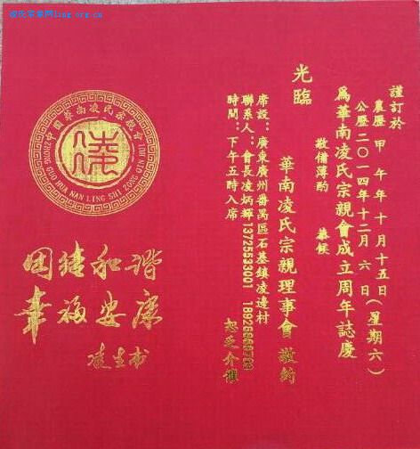 华南凌氏宗亲会成立周年志庆邀请函 | |||||